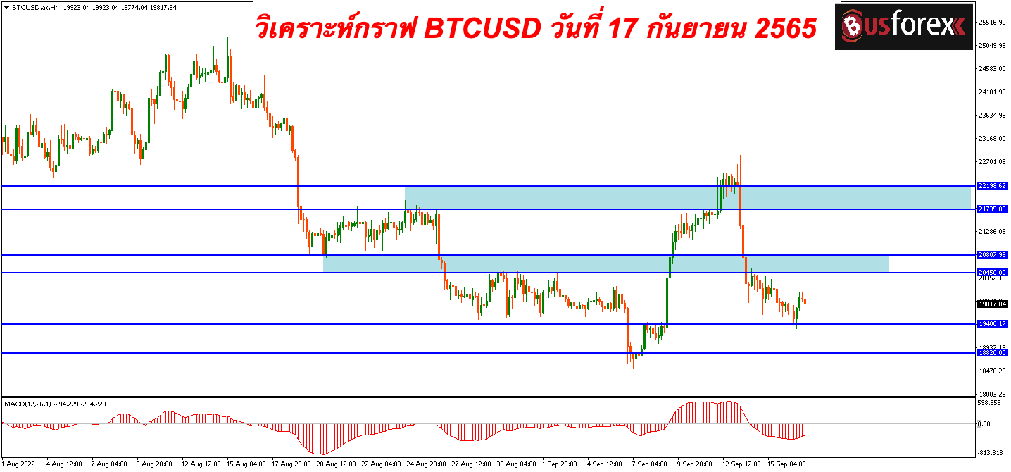 กราฟ BTC ตอนนี้มาดีดตัวอยู่แถวๆแนวรับที่ราคา 19,400$ อยู่นะครับ คาดว่ากราฟน่าจะขึ้นไปทดสอบแนวต้านที่กรอบราคา 20,410$ – 20,830$ ได้ต่อ ซึ่งก็ถือว่ามีระยะให้เก็บกำไรในฝั่ง buy อยู่พอประมาณ สามารถหาจังหวะเปิด buy ขึ้นไปหาแนวต้านด้านบนกันได้นะครับ แต่หากเปิด buy แล้วกราฟดันเทกลับลงมาทำ new low ได้เมื่อไหร่ ก็ให้ตัดขาดทุนทิ้งทันทีเช่นกัน ส่วนท่านใดที่หาจุดเข้า sell กันอยู่ ก็มารอให้กราฟขึ้นไปทดสอบแนวต้านที่กรอบราคา 20,410$ และ 20,830$ แล้วสามารถปิดแท่งเทียนกลับตัวลงจากแนวต้านนี้ให้ได้ก่อนนะครับ แล้วค่อยเปิด sell ลงมากันอีกทีครับ ส่วนแนวรับถัดลงมาในตอนนี้จะมีแนวรับที่ราคา 18,820$ โดยประมาณครับ