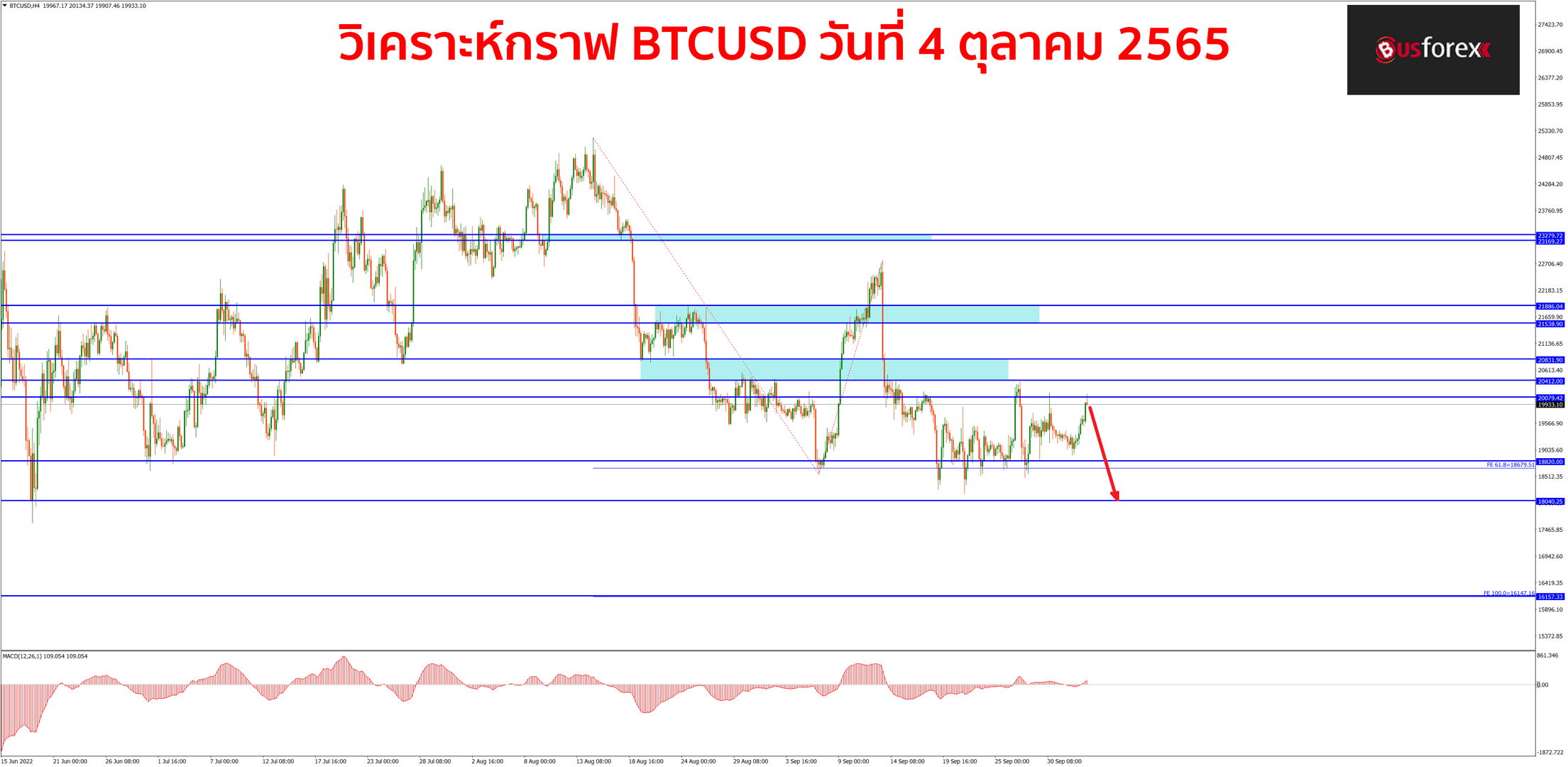 กราฟ BTC ตอนนี้กำลังมาทดสอบและดีดตัวอยู่ที่แนวต้านจิตวิทยาที่ราคา 20,000$ อยู่พอดีนะครับ แต่ตอนนี้กราฟยังไม่ได้มีสัญญาณหรือแพทเทิร์นกลับตัวลง จึงยังต้องระวังกราฟจะดีดตัวขึ้นไปเบรกแนวต้านนี้และไปทดสอบกรอบแนวต้านถัดขึ้นไปที่ราคา 20,410$-20,830$ ได้ต่อ ถึงแม้ว่าแนวโน้มหลักของกราฟตอนนี้ยังเป็นขาลงอยู่ แต่หากจะเปิด sell ก็อาจจะต้องรอให้กราฟมีสัญญาณกลับตัวลงให้เห็นชัดเจนอีกรอบเพื่อคอนเฟิร์มแรงขายก่อนจะดีกว่าแล้วค่อยมาหาจังหวะเปิด sell ลงมาลุ้นเป้าที่ 18,040$ และที่แนว Fibo 100% แถวๆราคา 16,160$ กันอีกทีครับ