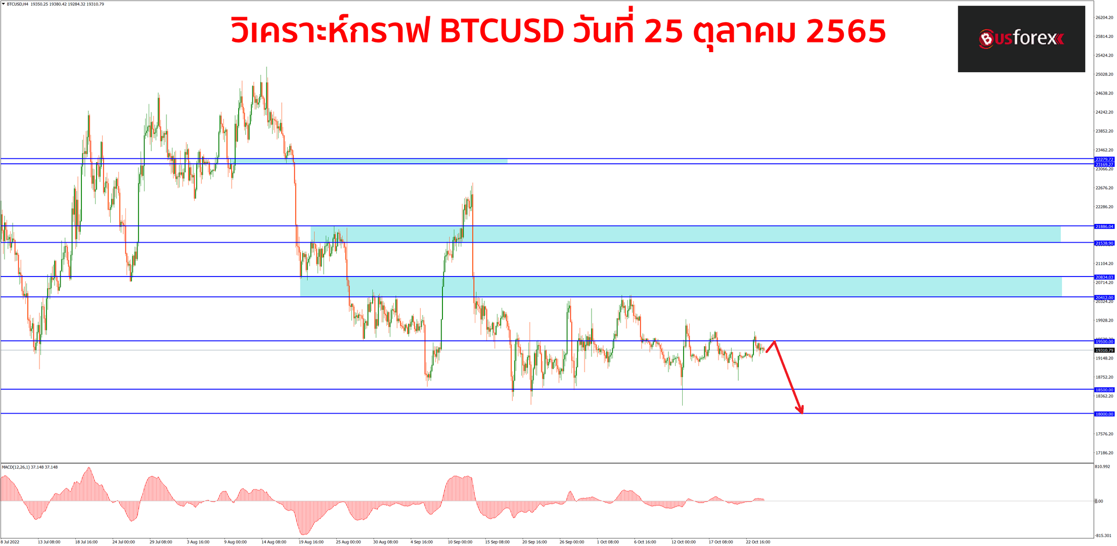 กราฟยังคงวิ่งอยู่แถวๆที่เดิมตั้งแต่เมื่อวานไม่ได้ไปไหนมาไหนเลยนะครับ มุมมองกราฟในภาพรวมตอนนี้จึงยังไม่มีอะไรเปลี่ยนแปลงไปอย่างมีนัยสำคัญ แนวโน้มกราฟตอนนี้ถึงแม้ว่าจะดูเป็นลักษณะ sideway ออกข้าง แต่หากมองในภาพรวมจริงๆยังถือว่าเป็น sideway พักตัวของขาลงอยู่ ดังนั้นแผนเทรดในช่วงนี้ส่วนตัวจึงจะเน้นฝั่ง sell ฝั่งเดียวเป็นหลักต่อไปก่อน ตราบใดที่กราฟยังไม่สามารถยก low ยก high สูงขึ้นให้เห็นอย่างชัดเจนอีกรอบคาดว่ามีโอกาสที่จะเห็นกราฟลงมาทดสอบแถวๆ low เดิมที่ราคา 18,000$ ได้ครับ
