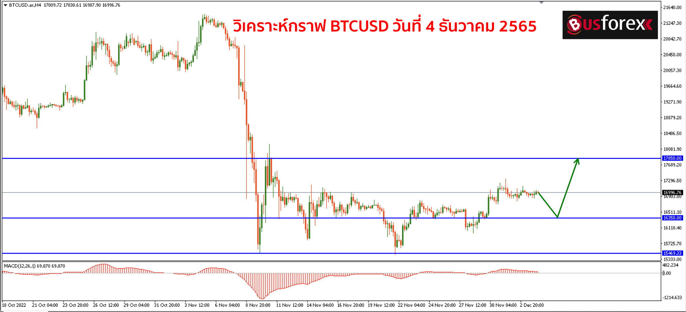 กราฟ BTC ยังคงไม่ได้วิ่งไปไหนไกลจากเมื่อวาน มุมมองกราฟในภาพรวมตอนนี้ก็ยังไม่ได้มีอะไรเปลี่ยนแปลงไปอย่างมีนัยสำคัญนะครับ แนวโน้มหลักของกราฟในภาพรวมยังคงเป็นขาลงเหมือนเดิม เพียงแต่ช่วงนี้เป็นช่วงพักตัวของกราฟอยู่นะครับ การที่กราฟยกสวิงสูงขึ้นในตอนนี้ยังเป็นการยกสวิงในรอบเล็ก จึงยังไม่ได้มองว่าเป็นสัญญาณกลับตัวขึ้นในตอนนี้ แต่ในช่วงที่กราฟพักตัวขึ้นแบบนี้ก็สามารถที่จะเก็บรอบฝั่ง buy กันได้อยู่นะครับ จนกราฟกลับลงมาเบรกสวิง low ก่อนหน้าได้อีกรอบแล้วค่อยกลับมาเทรดฝั่ง sell กันใหม่ แนวต้านตอนนี้ที่มองว่ากราฟมีโอกาสจะขึ้นไปทดสอบจะอยู่ที่ราคา 17850$ โดยประมาณ หากจะเปิด buy แนะนำให้รอกราฟย่อลงมาทดสอบแนวรับด้านล่างที่ราคา 16350$ แล้วสามารถปิดเป็นแท่งเทียนกลับตัวขึ้นให้เห็นชัดๆก่อนแล้วค่อยเปิด buy กลับขึ้นไปอีกทีครับ