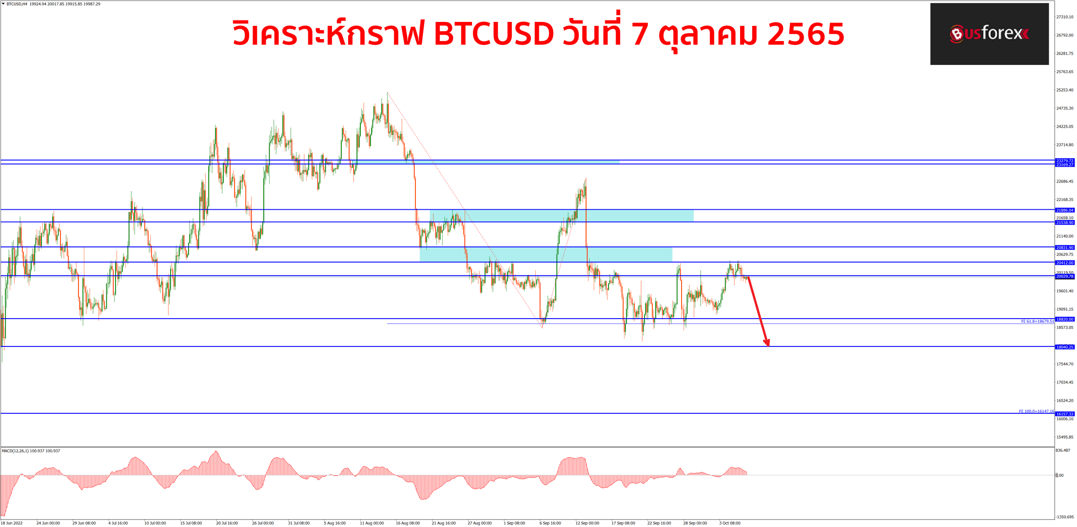 กราฟ BTC กลับลงมาทดสอบแนวรับที่ราคา 20,000$ ก็ไม่สามารถปิดแท่งเทียนกลับตัวขึ้นได้ สุดท้ายตอนนี้กราฟก็กลับลงมาอยู่ต่ำกว่าราคา 20,000$ ได้อีกครั้งนะครับ สำหรับแนวโน้มกราฟในภาพรวมที่ TF H4 และ DAY ก็ยังคงเป็นขาลงอยู่ แต่เนื่องจากการที่กราฟขึ้นไปทำสวิงไฮในรอบล่าสุดนี้เป็นการขึ้นไปทำ high สูงกว่า high ก่อนหน้าได้ จึงต้องระวังกราฟจะพักตัวรอบใหญ่ขึ้นไปทดสอบแนวต้านด้านบนที่ราคา 20,830$ ได้ต่อ ดังนั้นหากจะเปิด sell ลงมา ถึงแม้ว่าจะเป็นการเปิด sell ตามแนวโน้มหลักก็ตาม ส่วนตัวมองว่าควรรอให้กราฟมีแรงขายดันลงมาจนปิดแท่ง H4 เป็นแท่งขาลงแท่งใหญ่ให้ชัดเจนก่อนดีกว่าแล้วค่อยเปิด sell ลงมาอีกที หรือไม่ก็รอให้กราฟขึ้นไปทดสอบแนวต้านด้านบนแล้วปิดเป็นแท่งกลับตัวลงก่อนค่อยเปิด sell ก็ได้เช่นกันครับ