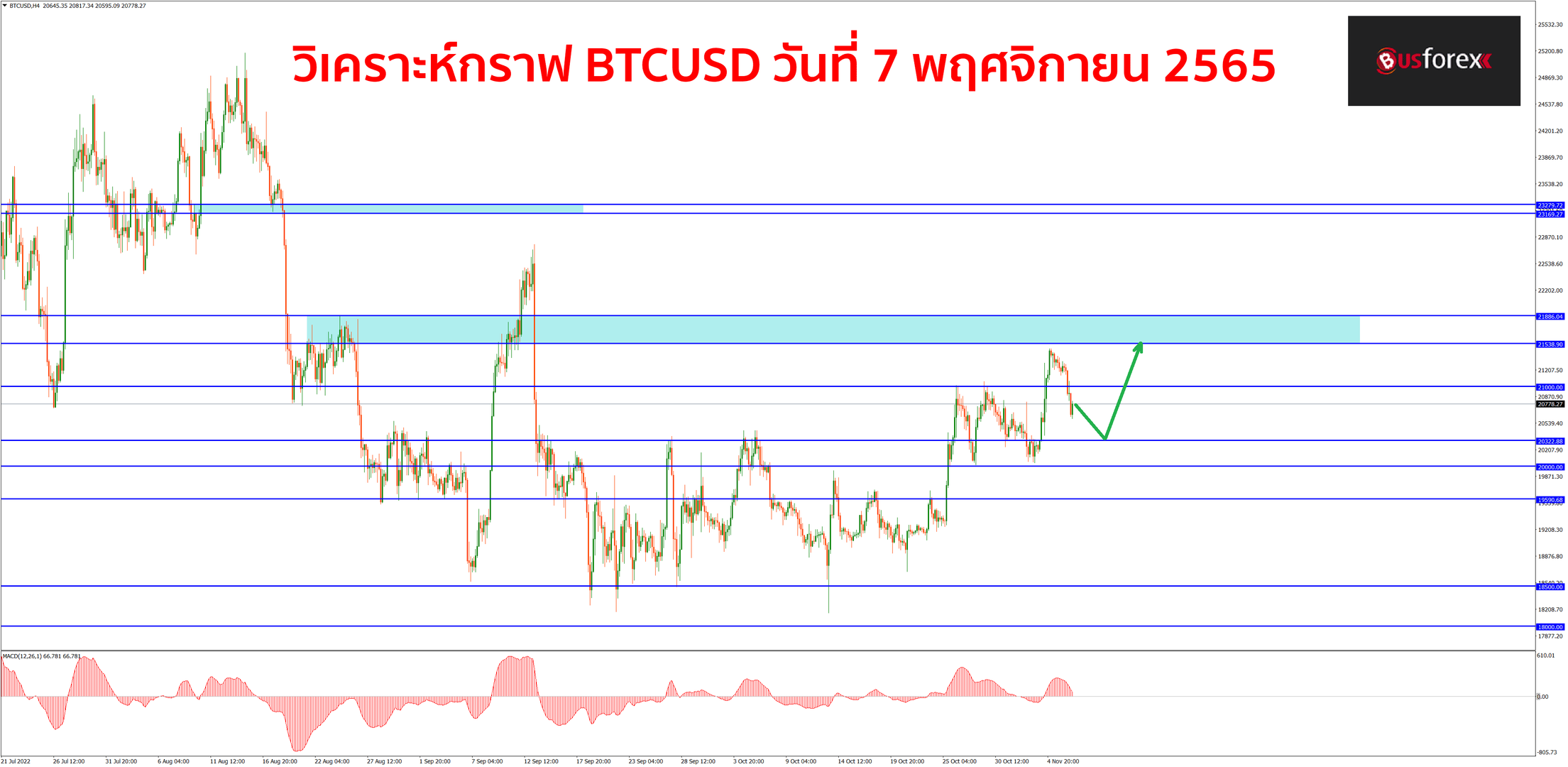 สำหรับแนวรับแรกที่ราคา 21,00$ กราฟย่อกลับลงมาทดสอบก็ผ่านลงมาได้อย่างง่ายดายเลยนะครับ ถึงแม้ว่ากราฟจะปรับตัวกลับลงมาได้อีกรอบแต่เนื่องจากยังลงมาทำ low ต่ำกว่า low ก่อนหน้าไม่ได้ จึงยังไม่ได้มองว่ากราฟจะกลับตัวลงในตอนนี้ หากจะให้กราฟกลับมาเป็นขาลง อย่างน้อยๆกราฟควรลงมาทำ low ต่ำกว่าสวิงโลวหลักที่ราคา 20,000$ ให้ได้ก่อน ดังนั้นแผนเทรดตอนนี้ก็จะยังเน้นเข้า buy กันไปก่อนนะครับ คาดว่ายังมีโอกาสได้เห็นกราฟขึ้นไปทดสอบแนวต้าน 21,540$ ได้อยู่ สำหรับแนวรับตอนนี้จะมีแนวรับอยู่ที่ราคา 20,320$ โดยประมาณ หากกราฟลงมาชนแนวรับนี้แล้วปิดแท่งเทียนกลับตัวขึ้นได้ค่อยเปิด buy กันครับ
