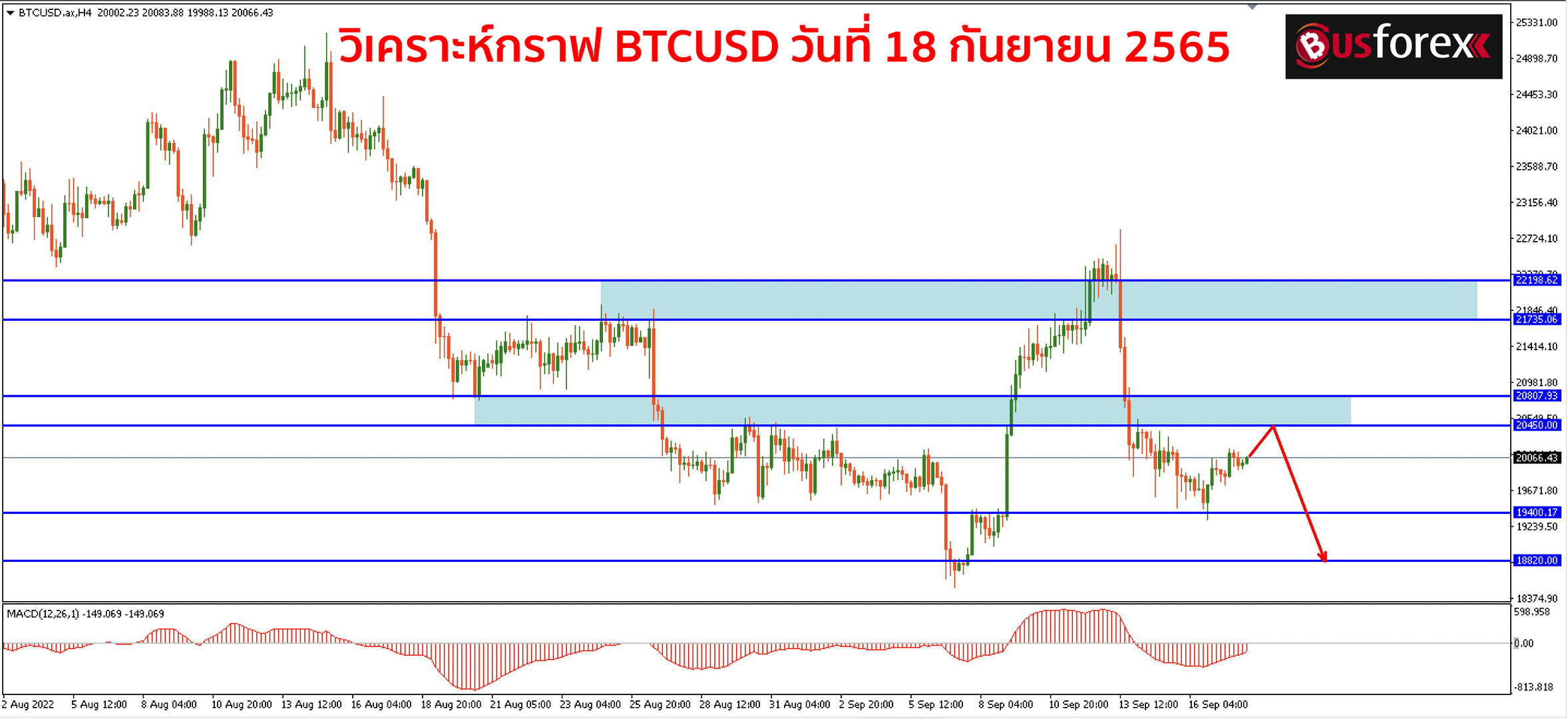 จากล่าสุดที่กราฟได้ลงมาทดสอบแนวรับที่ราคา 19,400$ กราฟก็ดีดตัวขึ้นมาอีกรอบจนถึงตอนนี้นะครับ มีโอกาสที่จะได้เห็นกราฟกลับขึ้นไปทดสอบแนวต้านที่กรอบราคา 20,410$ – 20,830$ ได้ต่อ อันที่จริงก็สามารถหาจังหวะเปิด buy เก็บรอบกันได้อยู่นะครับ แต่ก็ควรตั้ง sl ใว้เสมอ เนื่องจากการเทลงมาของกราฟในรอบสวิงใหญ่ในรอบล่าสุดนั้นเป็นการเทลงมาอย่างรุนแรงและรวดเร็ว กราฟจึงอาจจะมีแรงขายดักอยู่ที่บริเวณแนวต้านต่างๆได้ ทำให้กราฟมีโอกาสที่จะเทลงมาต่อได้ทุกเมื่อเช่นกัน ดังนั้นแผนเทรดหลักๆในตอนนี้ส่วนตัวจะมองฝั่ง sell เป็นหลักไปก่อน จนกว่ากราฟจะกลับมามีแรงซื้อที่มากขึ้นอย่างเห็นได้ชัด หรือมีแพทเทิร์นกลับตัวขึ้นให้เห็นแล้วค่อยกลับมาวางแผนในฝั่ง buy กันอีกที สำหรับแนวรับถัดลงมาในตอนนี้จะมีแนวรับอยู่ที่ราคา 18,820$ โดยประมาณครับ