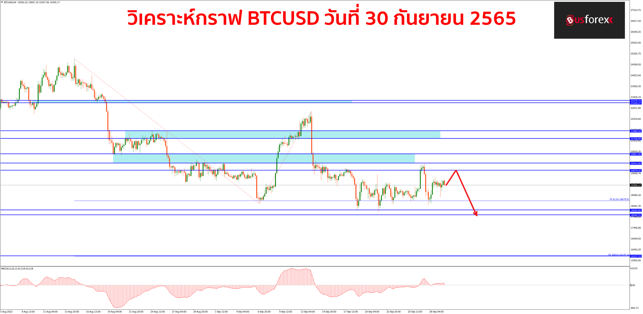 หลังจากที่กราฟได้ขึ้นไปทดสอบกรอบแนวต้านแถวๆราคา 19,360$-19,540$ กราฟก็ยังไม่สามารถทำแพทเทิร์นกลับตัวลงได้นะครับ จึงมองว่ากราฟมีโอกาสจะขึ้นไปทดสอบกรอบแนวต้านด้านบนที่ราคา 20,080$ และที่กรอบราคา 20,410$-20,830$ ได้ต่อ ถึงแม้ว่าแนวโน้มหลักของกราฟในตอนนี้จะยังเป็นขาลงแต่หากจะเปิด sell ก็คงต้องรอให้กราฟไปทดสอบแนวต้านแล้วปิดแท่งเทียนกลับตัวลงให้เห็นชัดๆก่อนจะดีกว่า เพราะที่กราฟลงมาทำสวิง low ล่าสุด กราฟยังทำ new low ไม่ได้นะครับ ส่วนแนวรับถัดลงมาหากกราฟแทงราคาทำ new low ได้ จะอยู่ที่ 18,040$ และที่แนว Fibo 100% แถวๆราคา 16,160$ โดยประมาณครับ