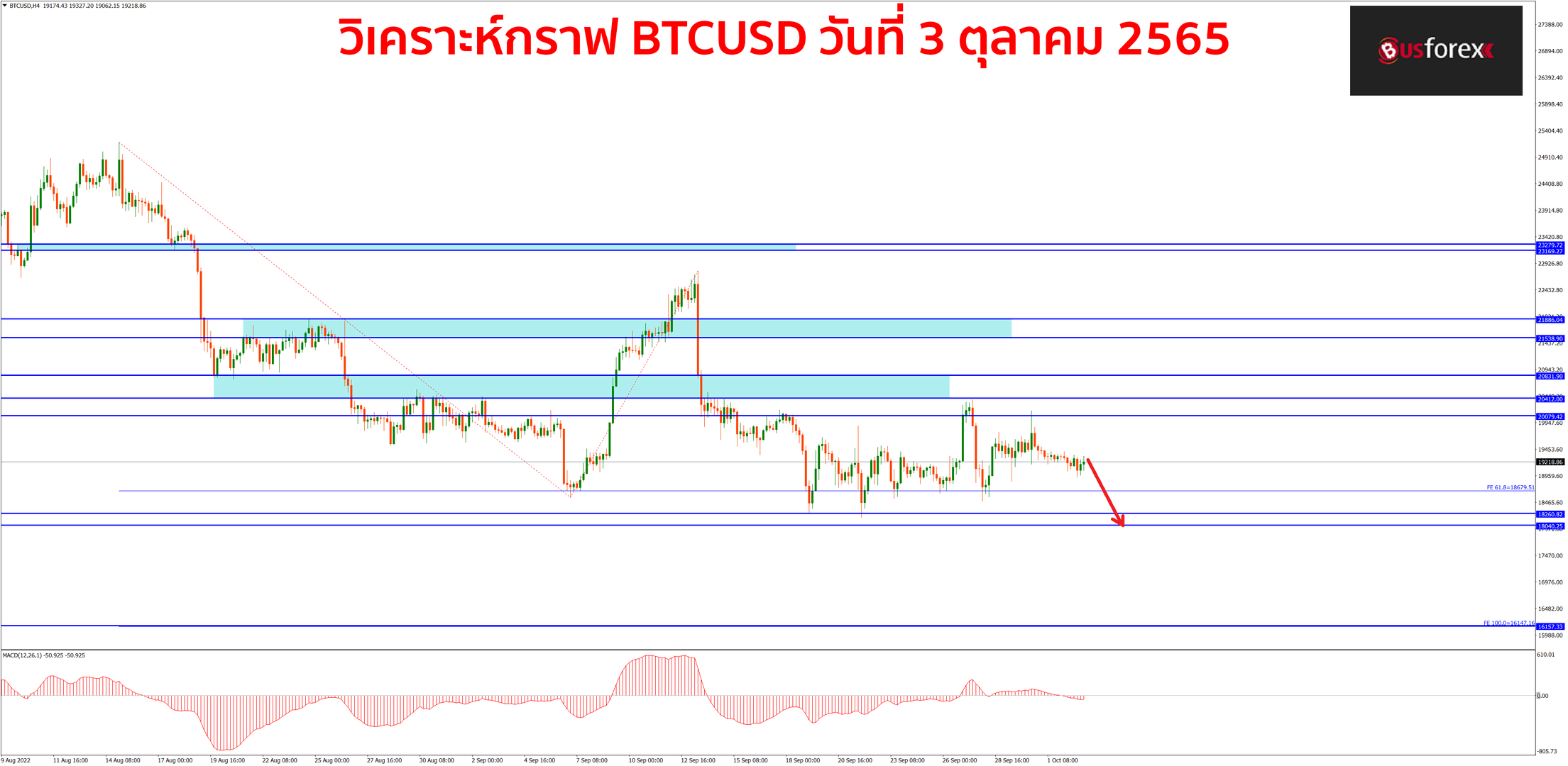 แนวโน้มหลักของกราฟ BTC ที่ TF H4 ยังคงอยู่ในแนวโน้มขาลง แต่ตอนนี้กราฟกำลังพักตัวเป็น sideway ออกข้างอยู่เหมือนเดิมนะครับ คาดว่าหากกราฟพักตัวจบรอบเมื่อไหร่ น่าจะได้เห็นกราฟเทลงมาทำ new low ตามแนวโน้มหลักได้ต่ออีกรอบ แต่หากจะเปิด sell ลงมาถึงแม้ว่าจะเป็นทิศทางเดียวกับแนวโน้มหลักก็ตาม ส่วนตัวมองว่าควรรอให้กราฟคอนเฟิร์มแรงขายด้วยการลงมาเบรกสวิง low ย่อยล่าสุดแถวๆราคา 18,820$ ให้ได้ก่อนจะดีกว่า แล้วค่อยมาหาจังหวะเข้า sell ลงมาลุ้นเป้าที่ 18,040$ และที่แนว Fibo 100% แถวๆราคา 16,160$ กันอีกที แต่หากกราฟไม่สามารถลงมาเบรกสวิง low ได้ก็ค่อยไปรอสัญญาณกลับตัวลงจากแนวต้านด้านบนที่ 20,410$-20,830$ กันต่อครับ