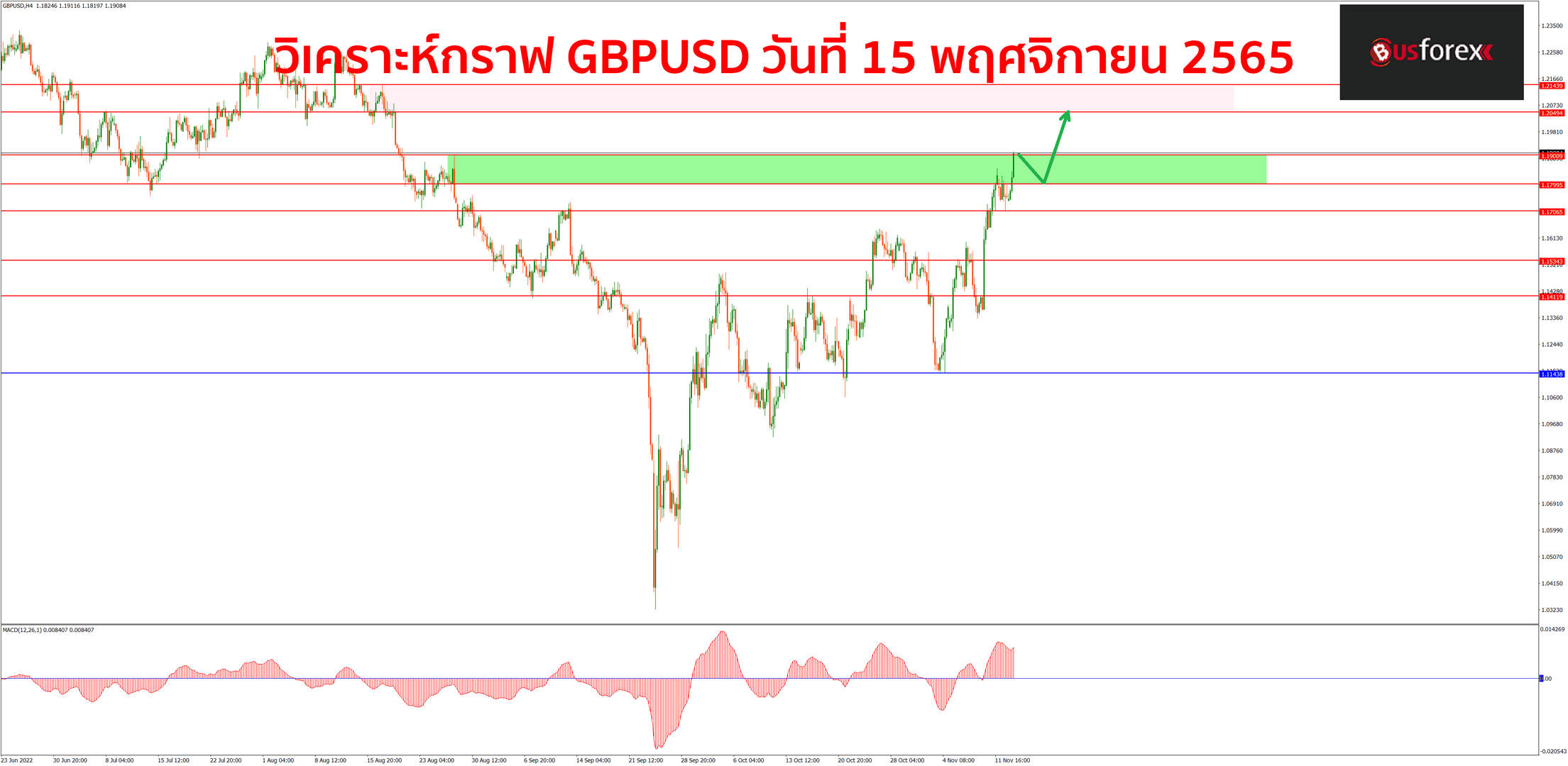 แนวโน้มกราฟตอนนี้ยังเป็นขาขึ้นชัดเจนนะครับ กราฟยังมีแรงซื้อดันราคาขึ้นอย่างต่อเนื่องจนกำลังจะทะลุกรอบแนวต้านที่ราคา 1.1800 – 1.1900 ขึ้นไปได้แล้ว หากกราฟขึ้นไปยืนเหนือกรอบนี้ได้เมื่อไหร่ แนวต้านถัดไปที่กราฟจะขึ้นไปทดสอบได้ต่อจะอยู่ที่ราคา 1.2000 และ1.2050 ตามลำดับ สำหรับแผนเทรดในช่วงนี้ที่กราฟยังไม่ได้มีสัญญาณกลับตัวลงให้เห็นเราจะมาเน้นเปิด buy ตามแรงซื้อกันต่อไปก่อน โดยแนวรับตอนนี้จะมีแนวรับอยู่ที่ 1.1800 ครับ