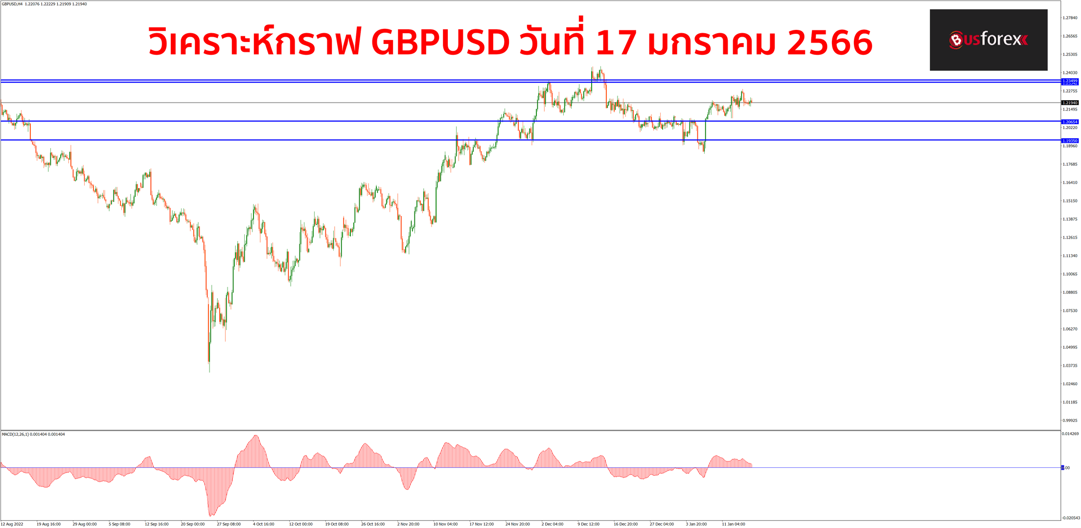 กราฟยังคงไม่ได้วิ่งไปไหนมาไหนตั้งแต่เมื่อวานนะครับ แนวโน้มกราฟตอนนี้ยังคงเป็นขาขึ้นเหมือนเดิม แต่หากดูจากการปิดแท่งเทียน DAY แท่งเมื่อวาน จะเห็นได้ว่ากราฟนั้นปิดเป็นแท่งแดงแบบทิ้งหางใว้ด้านบน ดังนั้นจึงต้องระวังกราฟจะย่อกลับลงมาด้านล่างมาทดสอบแนวรับแถวๆราคา 1.2065 ได้ก่อน แต่เนื่องจากที่กล่าวไปข้างต้นนะครับว่าแนวโน้มกราฟนั้นเป็นขาขึ้นอยู่ ดังนั้นแผนเทรดหลักๆจึงยังแนะนำให้เน้นฝั่ง buy กันไปก่อนนะครับ โดยจะรอให้กราฟย่อกลับลงมาทดสอบแนวรับแล้วสามารถปิดแท่งเทียนกลับตัวขึ้นได้ค่อยเปิด buy ขึ้นไปหาแนวต้านที่โซนราคา 1.2334 – 1.2350 กันครับ