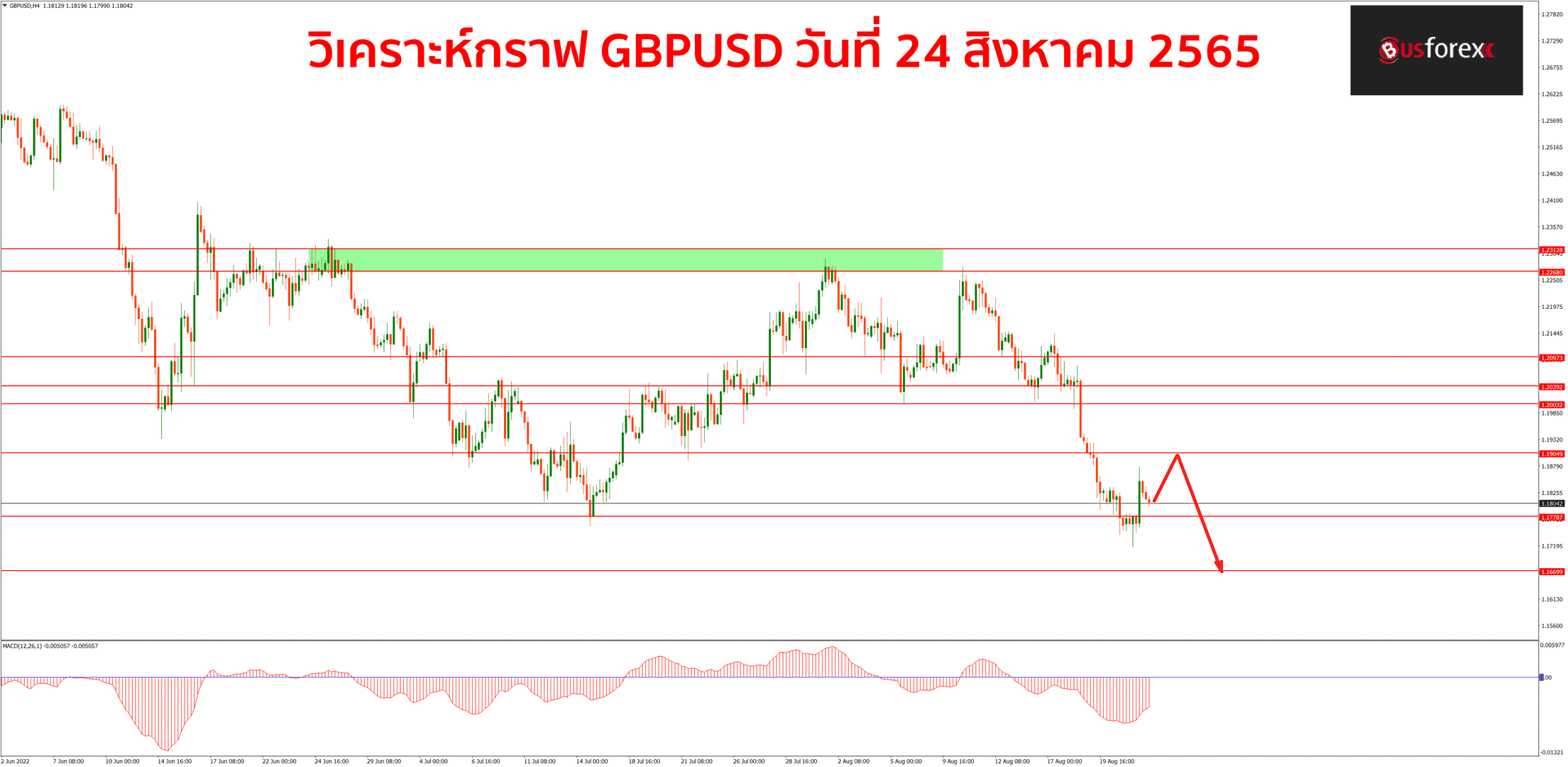 หลังจากที่กราฟแทงราคาลงมาทำ new low ได้ในรอบล่าสุด แต่สุดท้ายกราฟก็ยังยืนไม่อยู่นะครับ ตอนนี้กราฟได้เจอแรงซื้อดันราคากลับขึ้นไปอย่างรวดเร็วได้อีกรอบจนสามารถปิดแท่งเทียน H4 เป็นแท่งเขียวแท่งยาวได้ ซึ่งก็ถือว่าเป็นแท่งเทียนกลับตัวขึ้นรูปแบบหนึ่งเช่นกันนะครับ มีโอกาสที่กราฟจะขึ้นไปทดสอบแนวต้านด้านบนที่แถวๆราคา 1.1905 และ ที่กรอบราคา 1.2000 – 1.2040 ได้ต่อ หากจะเปิด sell ก็ให้รอกราฟขึ้นไปทดสอบแนวต้านดังกล่าวแล้วสามารถปิดแท่งเทียนกลับตัวลงหรือทำแพทเทิร์นกลับตัวลงให้ได้ก่อนแล้วค่อยเปิด sell ลงมาอีกทีครับ ส่วนแนวรับตอนนี้จะมีแนวรับอยู่ที่ราคา 1.1779 และ 1.1670 ตามลำดับครับ