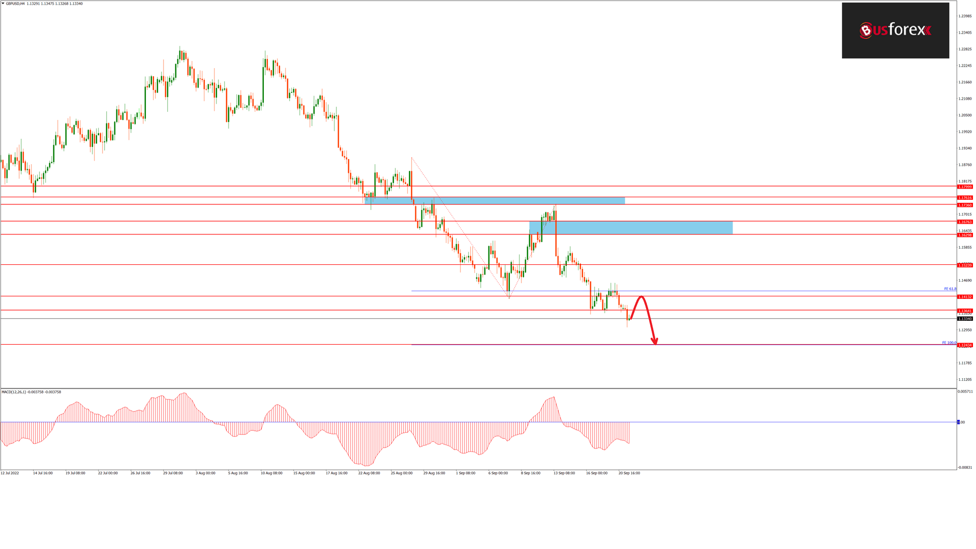 กราฟลงมาทำ new low ได้อย่างต่อเนื่องกันเลยทีเดียวนะครับ แนวโน้มกราฟยังคงเป็นขาลงชัดเจนและยังไม่มีสัญญาณกลับตัวใดๆในตอนนี้ ดังนั้นแผนเทรดในระหว่างนี้ก็จะเน้นเทรดฝั่ง sell ตามแนวโน้มต่อไปก่อน แนวรับถัดลงมาตอนนี้ เป้าหมายที่ Fibonacci 100% จะอยู่แถวๆราคา 1.1245 นะครับ ส่วนแนวต้านตอนนี้จะมีแนวต้านอยู่ที่ 1.1364 โดยประมาณ หากกราฟขึ้นไปทดสอบแนวต้านนี้แล้วปิดแท่งกลับตัวลงได้ค่อยเปิด sell กันครับ