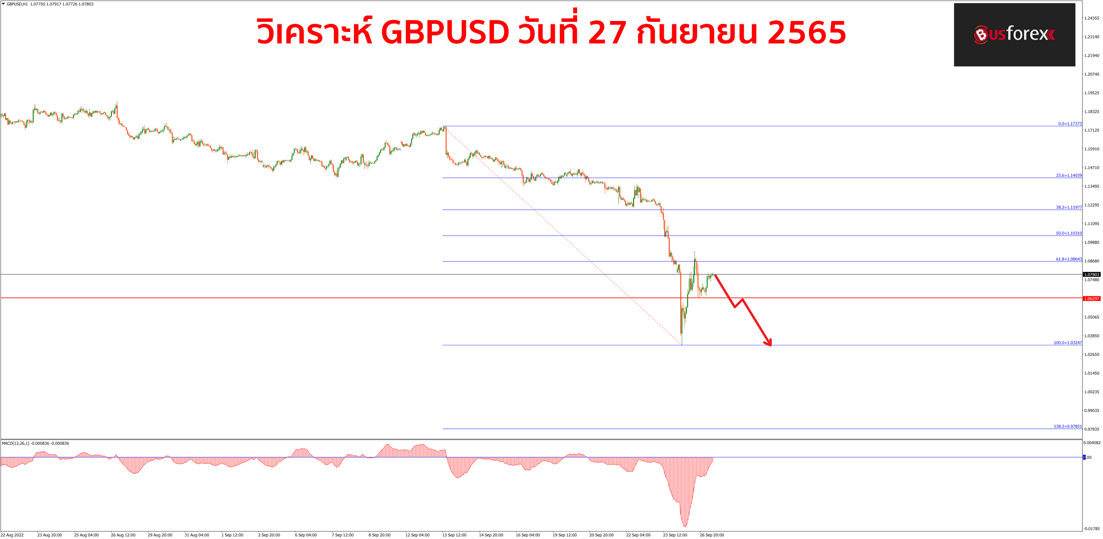 จากแผนเทรดของเมื่อวาน กราฟดีดตัวกลับขึ้นไปทดสอบแนว FIbo 23.6% และปิดเป็นแท่งเทียนกลับตัวลงได้ แอดมินก็เปิด sell ลงมาตามแผนนะครับ แต่กราฟก็ดันไม่ยอมลงมาและได้ดีดตัวขึ้นไปอีกรอบจนเบรกแนว Fibo 0% ขึ้นไปได้แทน ทำให้ออเดอร์ Buy ตามแผนเทรดของเมื่อวานก็ต้องโดนตัดขาดทุนทิ้งไปนะครับ แต่แนวโน้มหลักของกราฟในตอนนี้ก็ยังคงเป็นขาลงอยู่ดี และตอนนี้ส่วนตัวก็ยังมองว่ากราฟไม่ได้มีสัญญาณกลับตัวขึ้นใดๆให้เห็น ดังนั้นแผนเทรดวันนี้ก็จะใช้แผน sell ต่อไปก่อน แต่วันนี้จะเป็นการเข้าจังหวะเบรกเอาท์แทนนะครับ โดยจะรอให้กราฟลงมาเบรกสวิงโลวที่ราคา 1.0629 ให้ได้ก่อนแล้วค่อยเปิด sell ตามลงมาหา low ล่าสุดที่ราคา 1.0325 กันต่อครับ แต่หากเปิด sell แล้วกราฟดีดตัวขึ้นไปแทง high สูงขึ้นกว่า high ล่าสุดได้แทนก็จะตัดขาดทุนทิ้งทันทีครับ