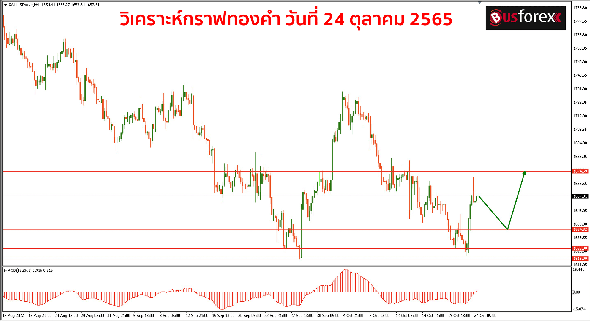 จากล่าสุดที่กราฟทองคำได้ลงมาทดสอบแนวรับที่บริเวณกรอบราคา 1622-1615 และไม่สามารถผ่านกรอบนี้ลงมาได้ กราฟก็บินกลับขึ้นไปอีกรอบอย่างรวดเร็วเลยนะครับ แต่เนื่องจากแนวโน้มในภาพรวมจริงๆของกราฟยังคงเป็นขาลงและยังไม่ได้มีสัญญาณกลับตัวขึ้นในรอบใหญ่ให้เห็นอย่างชัดเจน จึงมองว่าอาจจะยังไม่เหมาะที่จะเปิด buy แล้วถือยาวๆสักเท่าไหร่ ยังเหมาะกับการเก็บเป็นรอบๆไปก่อน และตอนนี้กราฟก็เริ่มเจอแรงขายทุบกลับลงมาได้บ้างแล้วนะครับ ก็มารอดูกันที่แนวรับที่ราคา 1635 กันต่อ ว่าหากกราฟลงมาชนแนวรับนี้แล้วจะสามารถปิดแท่งเทียนกลับตัวขึ้นได้หรือไม่ แล้วค่อยเปิด buy ขึ้นไปหาแนวต้านที่ราคา 1675 กันครับ