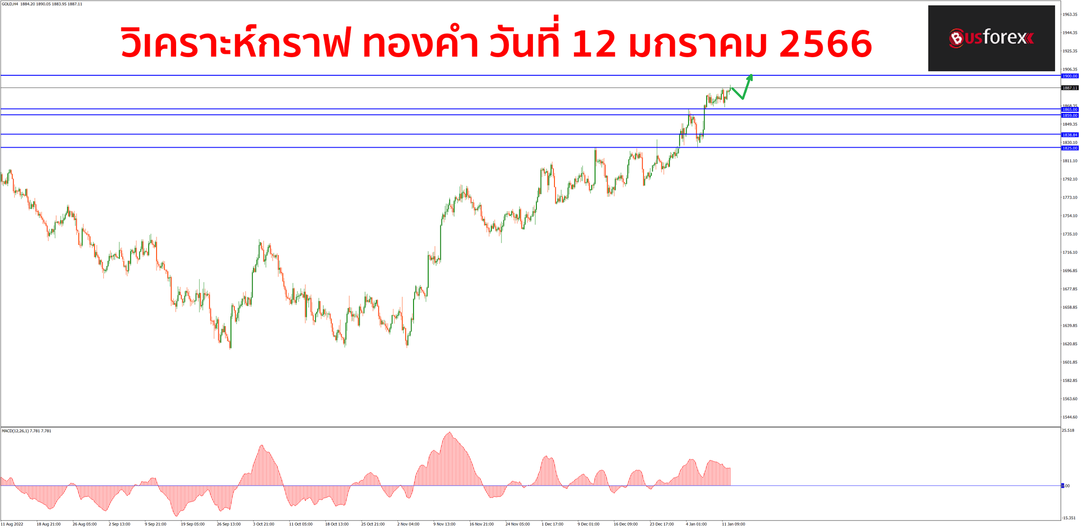 แนวโน้มกราฟทองคำตอนนี้เป็นขาขึ้นชัดเจนนะครับ จะเห็นได้ว่ากราฟสามารถปรับตัวขึ้นมายก low ยก high ได้อย่างต่อเนื่องจนตอนนี้ก็ใกล้จะขึ้นไปถึงแนวต้านที่ราคา 1900 ได้แล้วนะครับ สำหรับแผนเทรดในระหว่างนี้ก็คงไม่ต้องคิดอะไรมาก แนะนำให้เน้นฝั่ง buy ฝั่งเดียวเป็นหลักกันไปก่อน จนกว่ากราฟจะกลับมามีสัญญาณกลับตัวลงให้เห็นอย่างชัดเจนแล้วค่อยมาว่ากันใหม่อีกที สำหรับแนวรับตอนนี้จะมีแนวรับอยู่ที่ราคา 1877.6 และที่โซนราคา 1865 – 1859 ตามลำดับครับ