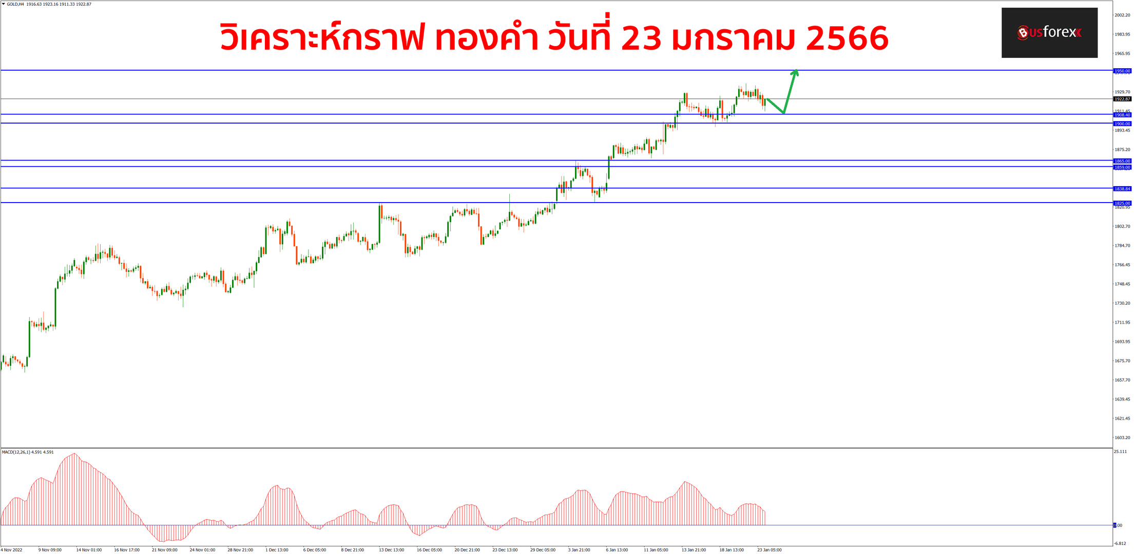 กราฟทองคำตอนนี้ก็ขึ้นไปทำ new high ได้ต่อและไปทำไฮสูงสุดใว้เกือบๆ 1940 นะครับ แต่เนื่องจากแนวโน้มกราฟตอนนี้ยังคงเป็นขาขึ้นเต็มตัว และกราฟยังไม่ได้มีท่าทีว่าจะกลับตัวลงแต่อย่างใด จึงมองว่ากราฟจะขึ้นไปทดสอบแนวต้านถัดไปที่ 1950 ได้ต่อ ดังนั้นแผนเทรดวันนี้จะยังคงรอหาจังหวะ buy ตามแนวโน้มกันต่อไปก่อน โดยแนวรับตอนนี้จะมีแนวรับอยู่ที่ราคา 1908.4 ครับ