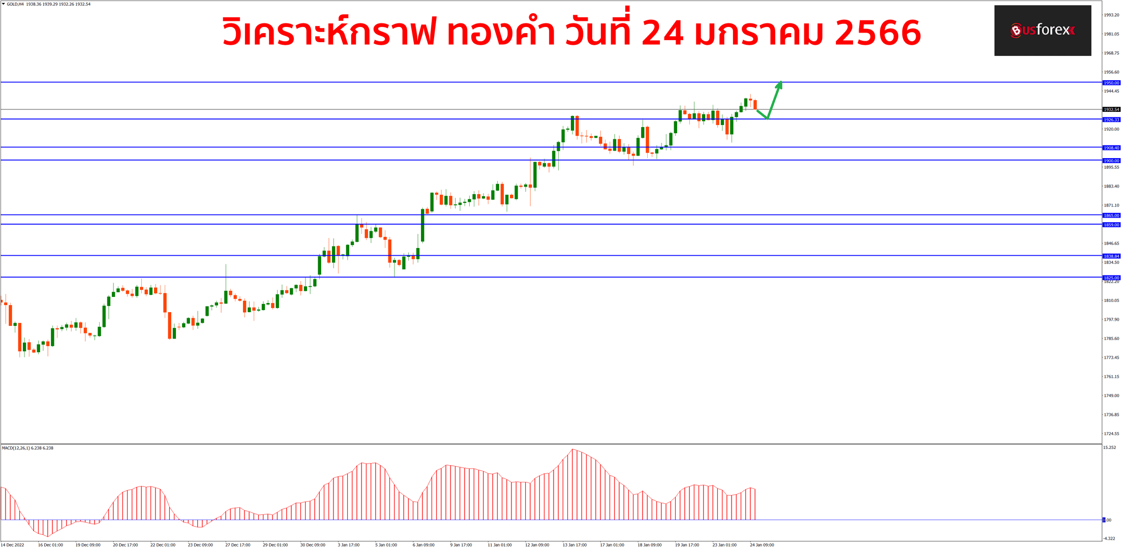 กราฟทองคำยังคงขึ้นไปทำ new high ได้อย่างต่อเนื่องเลยนะครับ แนวต้านถัดไปที่ราคา 1950 คาดว่ากราฟน่าจะไปทดสอบได้ไม่ยาก เนื่องจากแนวโน้มทองคำตอนนี้เป็นขาขึ้นเต็มตัวและไม่ได้มีสัญญาณหรือทีท่าว่าจะกลับตัวลงใดๆให้เห็น แผนเทรดช่วงนี้จึงแนะนำให้เน้น buy เป็นหลักกันต่อไปก่อนนะครับ สำหรับแนวรับตอนนี้จะมีแนวรับแรกอยู่ที่ราคา 1926.5 โดยประมาณ หากกราฟลงมาทดสอบแล้วปิดแท่งกลับตัวขึ้นได้ก็ค่อยเปิด buy กันครับ