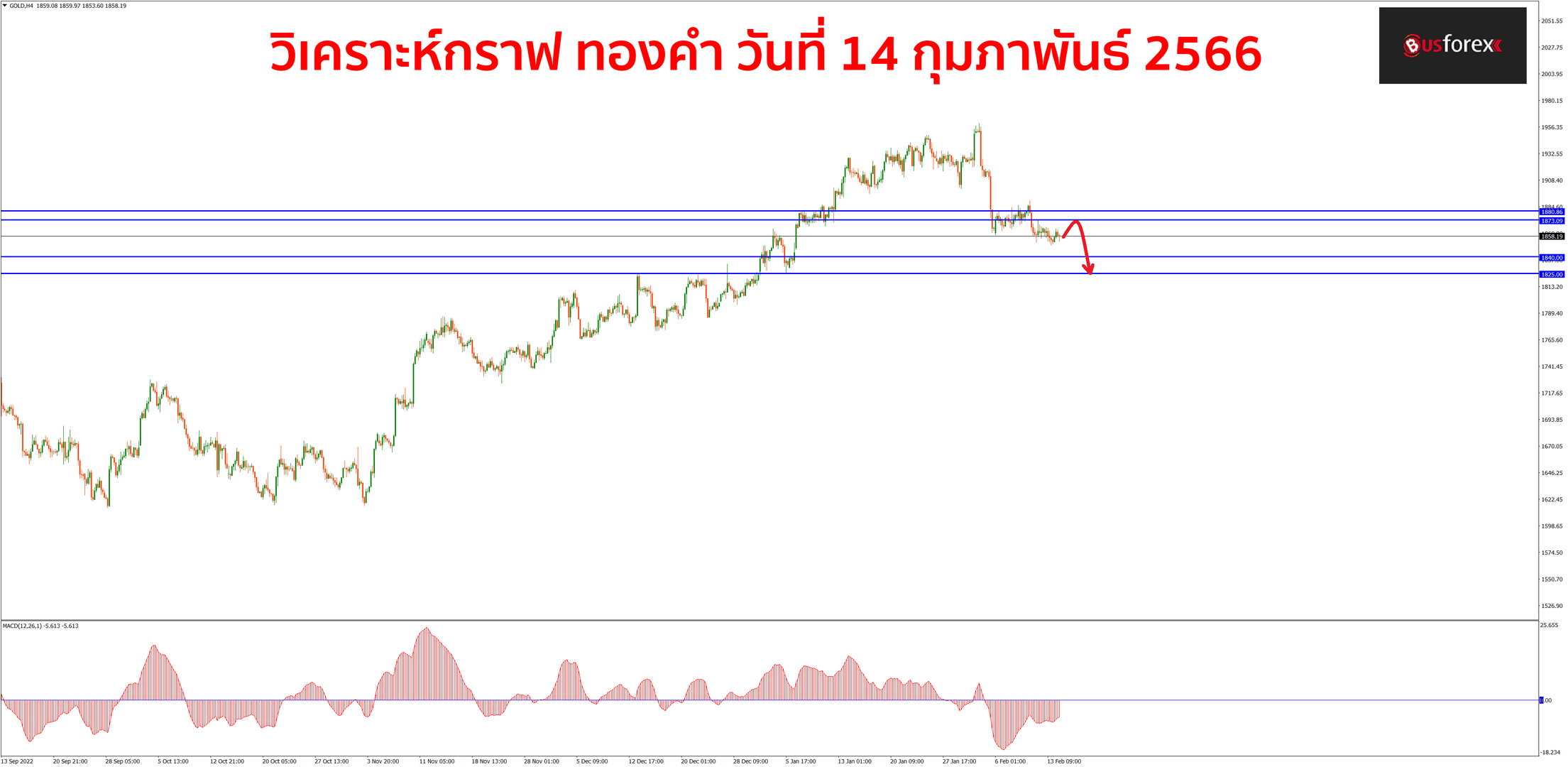 กราฟทองคำยังคงไม่ได้วิ่งไปไหนมาไหนจากเมื่อวานเลยนะครับทำให้มุมมองกราฟในภาพรวมยังคงไม่มีอะไรเปลี่ยนแปลงไปจากเดิม ยังคงมองว่ากราฟมีโอกาสจะลงมาทดสอบแนวรับที่ราคา 1840-1825 ตามลำดับ หากดูจากการเทลงมาของกราฟในรอบล่าสุดจะเห็นได้นะครับว่ากราฟนั้นมีจังหวะที่เทลงมาอย่างรุนแรงอยู่หลายแท่งเทียน ดังนั้นฝั่งแรงขายในตอนนี้จึงดูจะความได้เปรียบมากกว่า ยังไม่เหมาะที่จะเปิด buy สวนขึ้นไปนะครับ แผนเทรดวันนี้ก็จะมาหาจังหวะเปิด sell ตามแรงขายกันไปก่อน โดยแนวต้านตอนนี้จะมีแนวต้านอยู่ที่ 1873-1880 ครับ