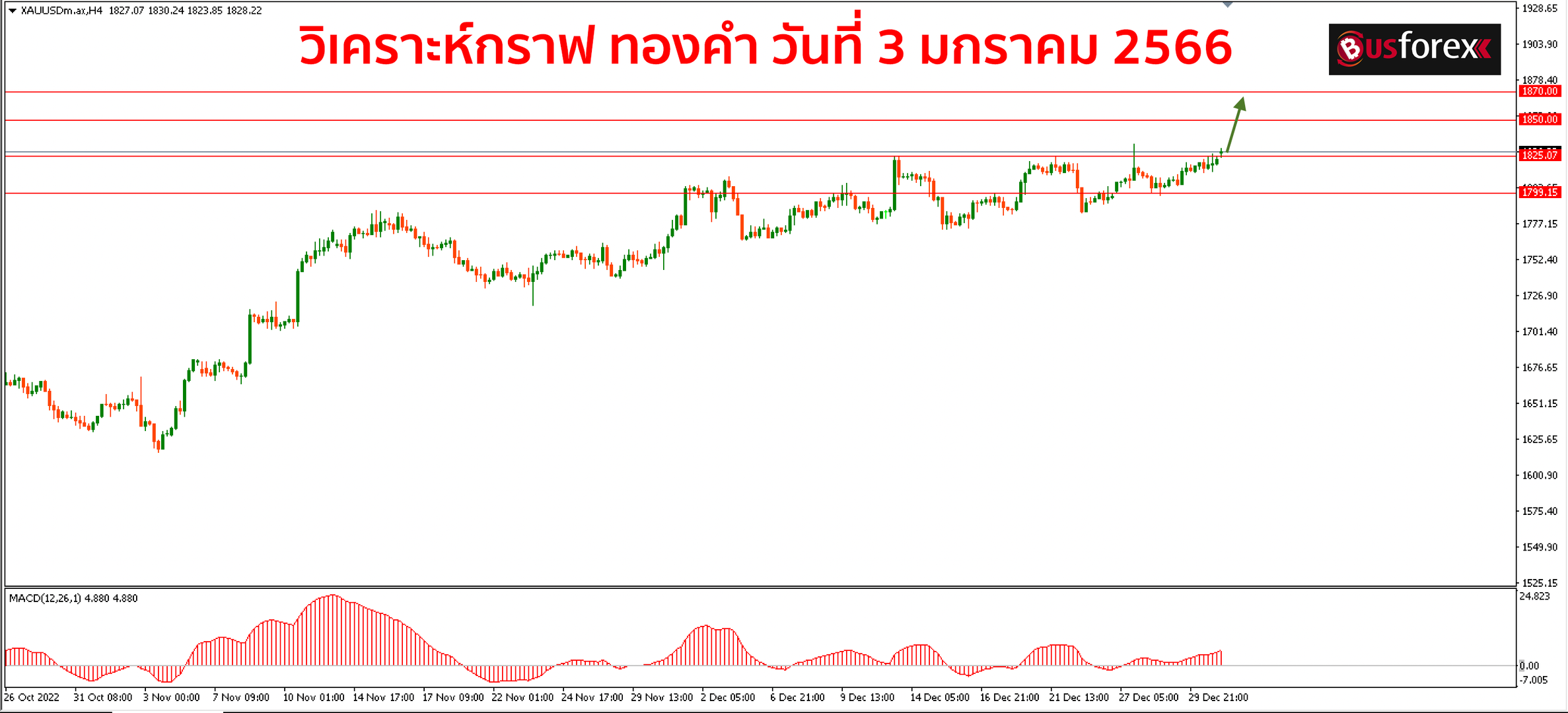 กราฟทองคำเปิดตลาดมาวันนี้ก็เปิดเป็น gap ขึ้นไปได้ต่อนะครับ ซึ่งแนวโน้มกราฟทองคำในตอนนี้ก็ยังคงเป็นขาขึ้นเต็มตัว คาดว่าน่าจะได้เห็นทองคำขึ้นไปแตะ 1850 -1870 ได้ต่อ ในระหว่างนี้ที่กราฟทองคำยังไม่ได้มีสัญญาณกลับตัวลงให้เห็นแนะนำให้เน้นเทรดฝั่ง buy ฝั่งเดียวเป็นหลักไปก่อนนะครับ จนกว่ากราฟจะมีสัญญาณกลับตัวลงที่ชัดๆค่อยมาว่ากันใหม่อีกที สำหรับแผนเทรดวันนี้ก็จะมาหาจังหวะเปิด buy ตามแนวโน้มกันต่อเลยนะครับ