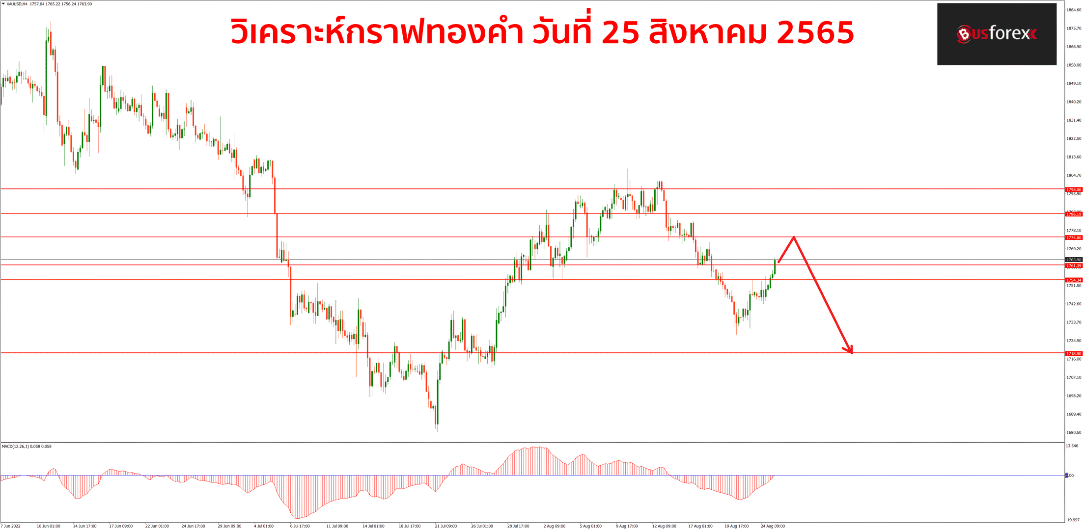 จากที่ล่าสุดกราฟได้ขึ้นไปทดสอบอดีตแนวต้านที่ 1754.3 และสามารถปิดแท่งโดจิที่แนวต้านนี้ได้ แต่สุดท้ายก็ไม่มีแท่งแรงขายมาคอนเฟิร์มการกลับตัวลงนะครับ และกราฟก็ปรับตัวขึ้นต่อจนทะลุแนวต้าน 1761.4 ขึ้นมาได้เล็กน้อยแล้ว ก็ต้องมารอดูกันต่อนะครับว่ากราฟจะสามารถยืนอยู่เหนือราคานี้ได้หรือไม่ หากกราฟยืนอยู่แนวต้านถัดไปที่กราฟจะขึ้นไปทดสอบได้ต่อจะอยู่ที่ราคา 1774.8 โดยประมาณ แต่หากกราฟยืนเหนือแนวต้าน 1761.4 ไม่ได้ และกราฟมีสัญญาณกลับตัวลงมาอีกรอบ ก็มีลุ้นที่จะได้เห็นกราฟเทกลับลงมาทำ new low มาทดสอบแนวรับที่กรอบราคา 1722.5-1719 ได้ต่อเช่นกันครับ